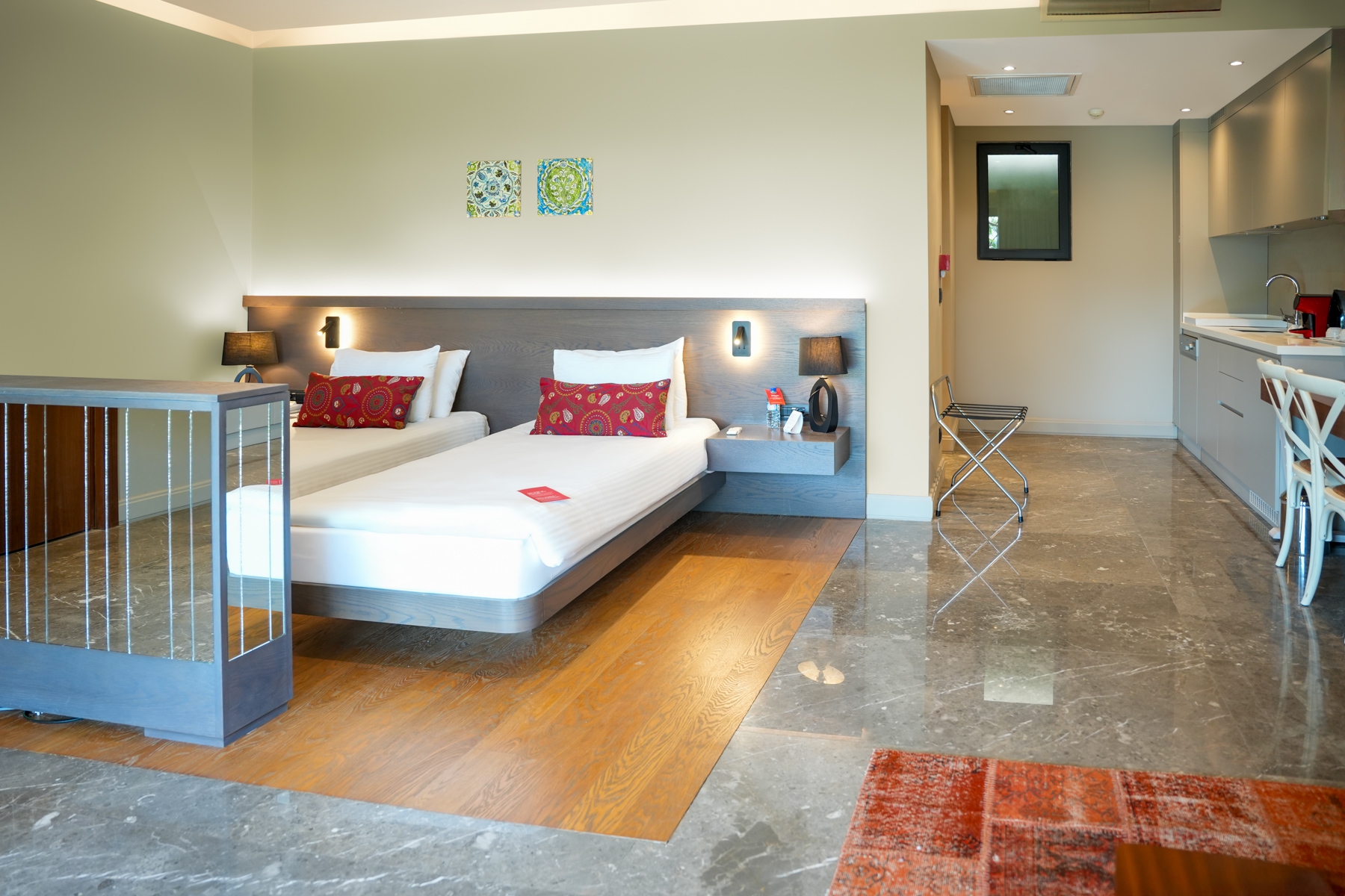 Birbiri ile bağlantılı olabilen 12 adet modern dekorasyonlu villa; ortak havuzu, oturma alanları, donanımlı mini mutfağı ile özellikle partiler için de ideal. Buggy ile tesis içi ulaşım olanağı da konaklamanıza konfor katıyor.