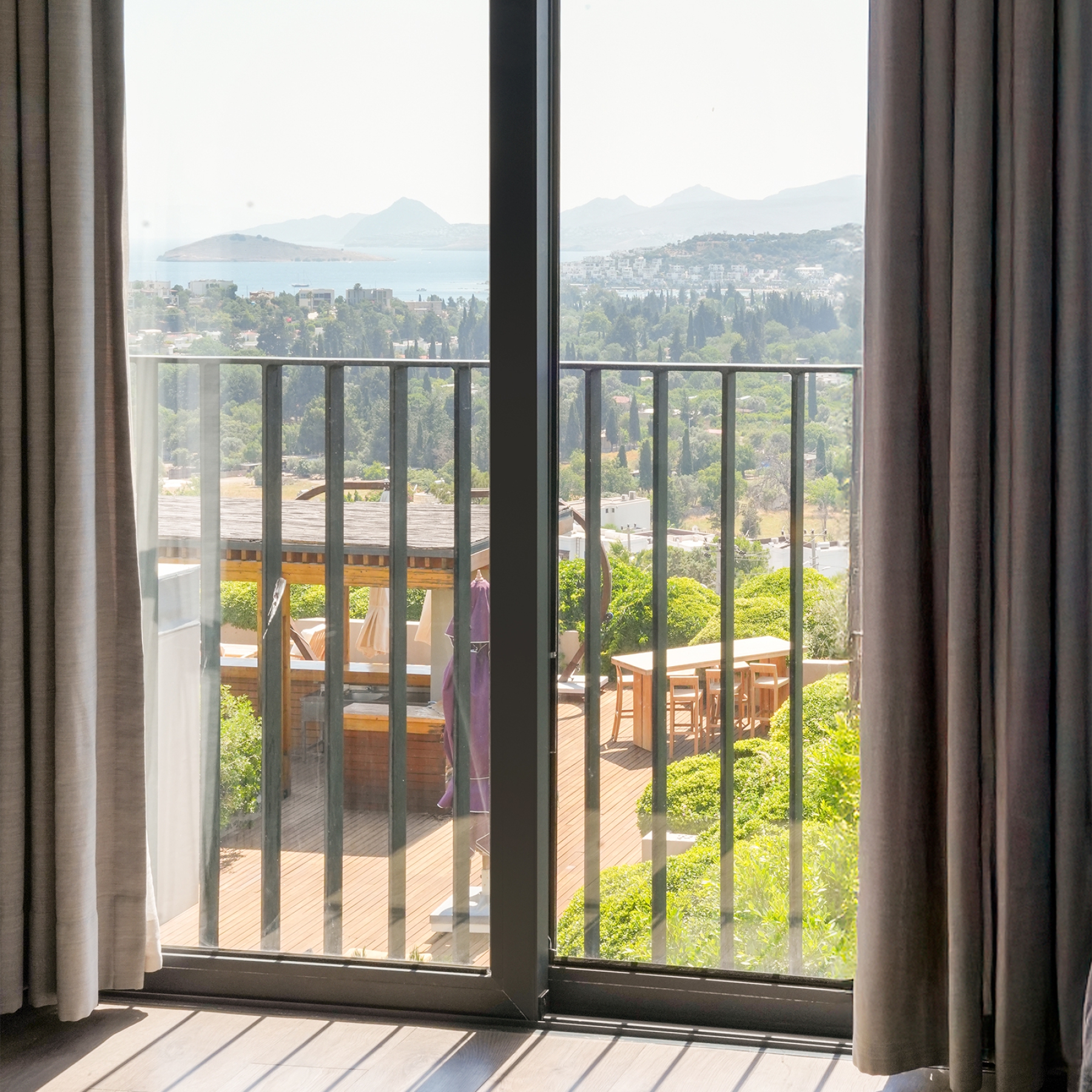 Ege Denizi, Kos Adası ve Bitez manzarasıyla Bodrum’un güzelliklerinden en iyi şekilde yararlanmak isteyenler için mükemmel bir seçim.